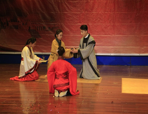 颁奖结束,迎新晚会在具有民族特色的藏族舞中拉开帷幕,历史剧《文成公主入藏》和《西周五礼之笄礼》带我们感受了文成公主的深明大义和古代西周女子成人礼的全过程,充分展现了历史特色弘扬了传统文化;激情澎湃的街舞《战争》、歌曲串烧、舞蹈《咖喱咖喱》和《失恋阵线联盟》彰显了必赢青年大学生的青春活力和积极健康的生活态度;诗朗诵《我的南方和北方》感情充沛,充分表达了必赢大学生对祖国母亲的热爱和对家乡的深切思念;相声《众口难调》幽默风趣,点燃了现场的阵阵笑声;小品《老爸》表达了要铭记父母的付出,理解父母的辛苦,表现了必赢学生知恩感恩的品质。