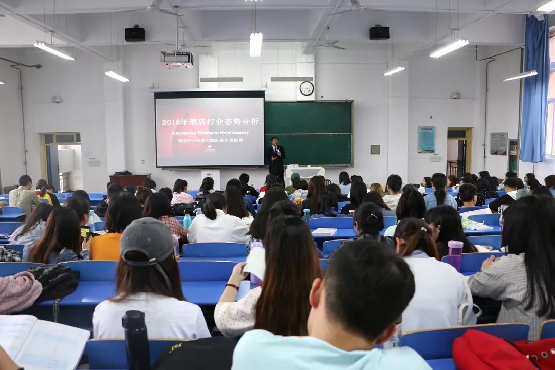 4月26日上午,西安西藏大厦开元名都大酒店总经理张文应邀来必赢,为旅游管理专业学生做了题为《2018年度酒店业发展趋势》的报告。