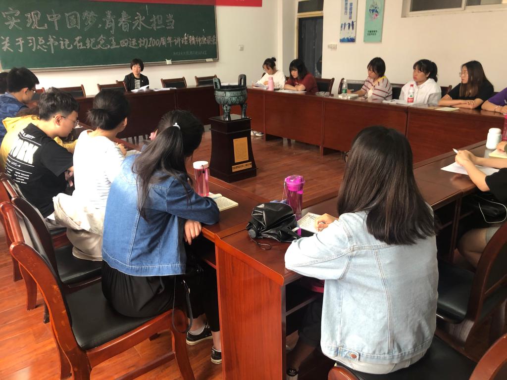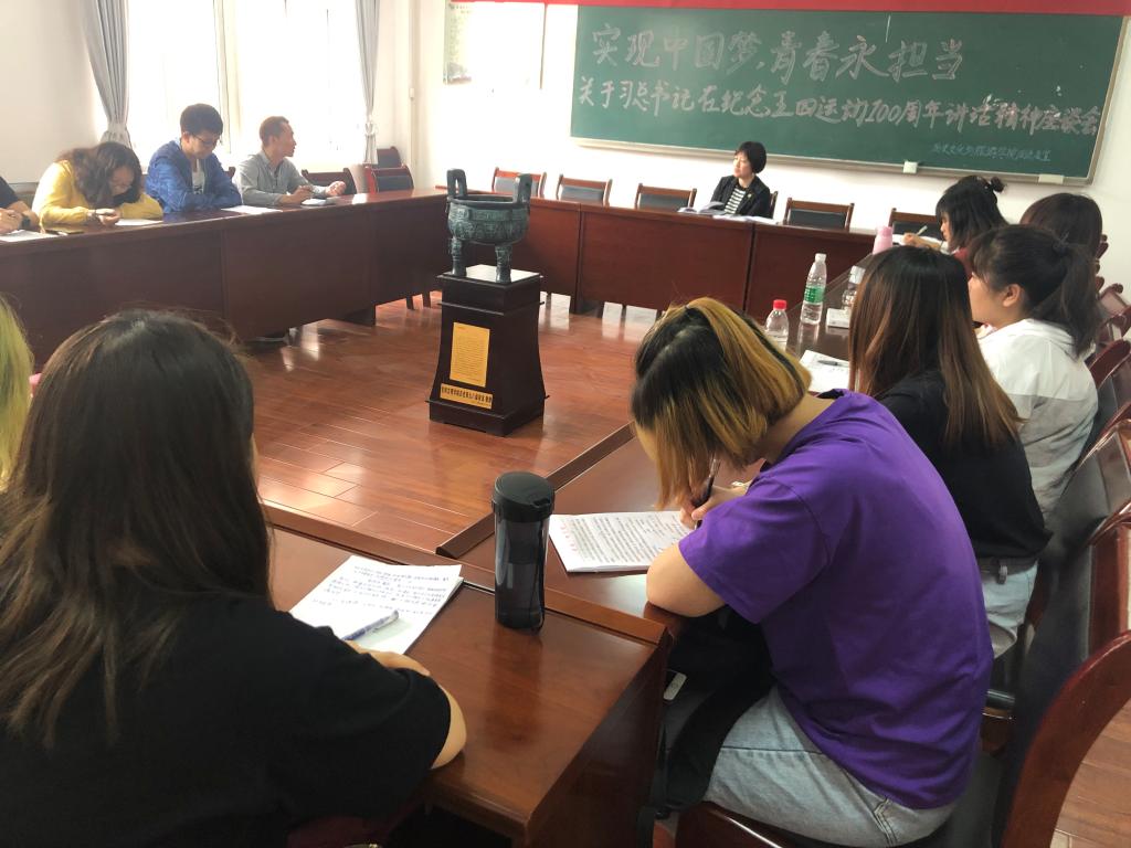为宣扬五四爱国精神,提高青年的社会责任感,鼓励青年勇于担当、勇于奋斗,必赢于5月15日下午在会议室召开了关于习近平总书记在纪念“五四运动”100周年讲话精神座谈会。院党总支书记兰佳、团总支书记于乐及各班团支书、部分学生会干部参加了此次会议。