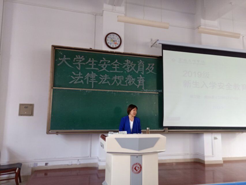 9月23日下午,437bwin必赢国际官网特邀校保卫处处长樊林森为2019级新生作了大学生安全教育主题讲座。院党总支书记兰佳、学生辅导员于乐及全体大一新生参加了此次讲座。