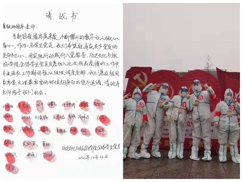 义不容辞做表率。在疫情防控的艰难时刻,为切实做好防疫工作,增强同学们的疫情防控意识,学院党员防疫先锋队主动倡议,以签订承诺书的形式,倡导广大学生积极落实防疫责任,用实际行动践行铿锵誓言,诠释使命担当。学生党员何丽蓉表示:疫情就是命令,作为党员在这场大考面前,我们必须冲锋在前,为同学们做好表率、做好服务。入党积极分子栗晨梅同学说:“签订承诺书,既是担当,也是约束。作为入党积极分子,我们要勇于承担责任,带头承诺,以更高的标准更严的要求做出表率,以实际行动为打赢疫情防控阻击战贡献自己的力量。”