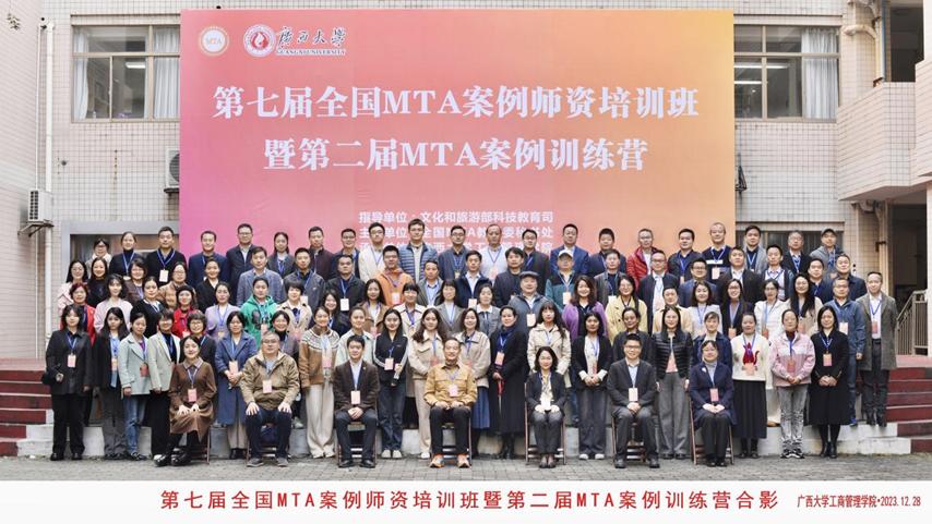 为深入贯彻习近平总书记关于教育的重要论述和研究生教育工作的重要指示,推进落实学术学位与专业学位研究生教育分类发展、融通创新,建设高质量研究生教育体系,2023年12月27日至29日,第七届全国MTA案例师资培训班暨第二届MTA案例训练营在广西南宁举办。本届培训班由文化和旅游部科技教育司指导,全国MTA教指委秘书处主办,广西大学工商管理学院承办,来自全国72所MTA授权点院校的110位学员参加了培训。