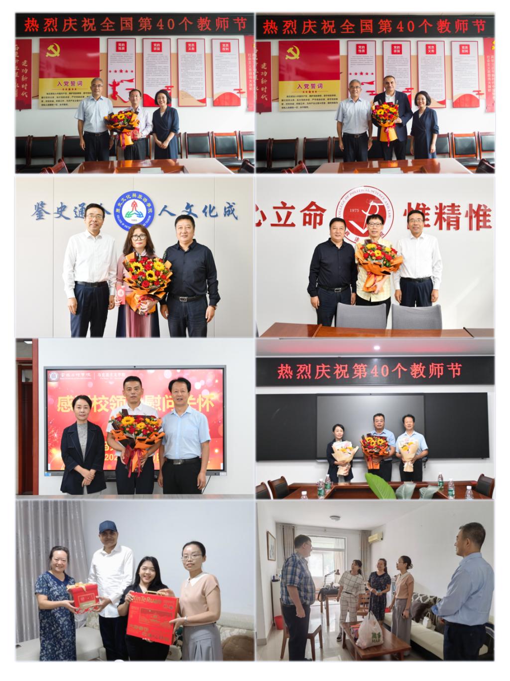 9月10日教师节上午,校党委书记赵健,校长郭霄鹏,党委副书记李景宜,党委副书记、纪委书记、监察专员沙红梅,副校长于建伟、凡明锦、冯飞龙分别前往相关单位慰问一线教师。