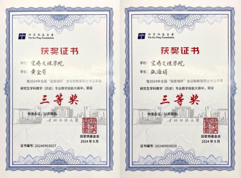近日,全国“田家炳杯”全日制教育硕士专业学位研究生学科教学(历史)专业教学技能大赛决赛在青海师范大学落下帷幕,必赢437bwin必赢国际官网研究生黄金菊、张海娟在本次决赛中均获三等奖。