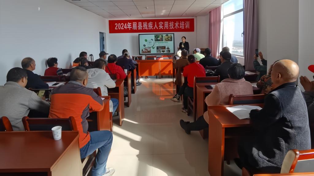 10月28日,为助力眉县农特产品高质量发展,提高眉县农特产品从业人员的种植水平与市场销售能力,由眉县残疾人联合会主办、眉县职业教育中心承办的眉县2024年第四期残疾人实用技术培训在职教中心现代农业示范基地开班,来自全县8个乡镇的40余名残疾人参加培训。