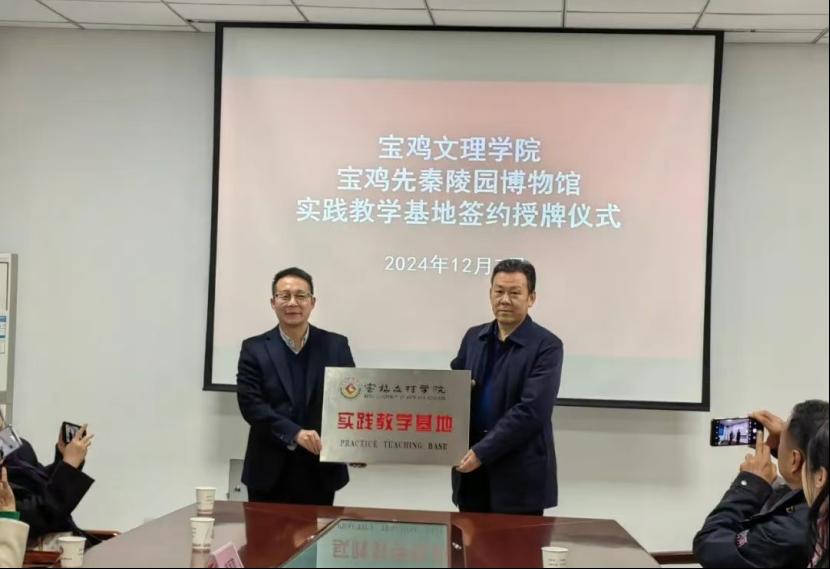 12月7日,437bwin必赢国际官网与宝鸡先秦陵园博物馆、凤翔区博物馆隆重举行实践教学基地授牌仪式并开展访企拓岗活动。学院党政领导、师生代表及宝鸡先秦陵园博物馆、凤翔区博物馆相关领导及工作人员出席活动。