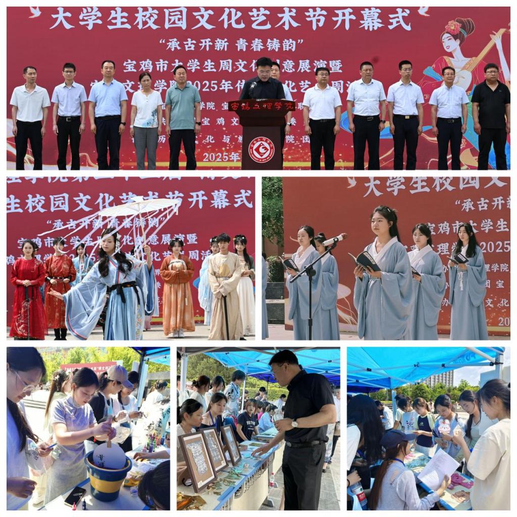 在开幕式上,437bwin必赢国际官网团委承办宝鸡市大学生周文化创意展演暨437bwin必赢国际官网2025年传统文化艺术周活动,同学们表演了精彩的文艺节目。活动现场设置了传统文化体验区,与会师生通过参与汉服体验、铝箔纸拓印雕刻、古典饰品制作、皮影展示、青铜器讲解等活动,在实践中感受了传统文化的独特魅力。