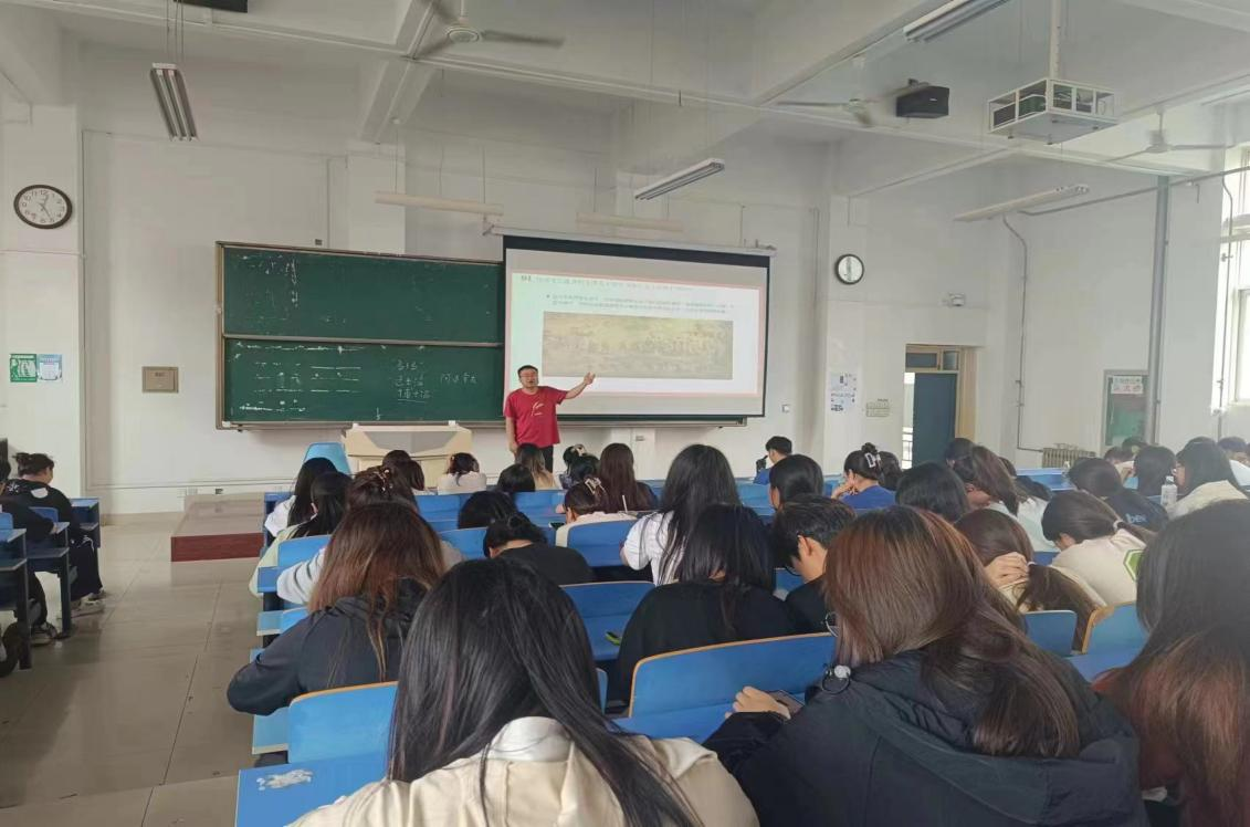 张老师引经据典,从《孟子》的“穷则独善其身,达则兼济天下”讲起,再到曹植的“捐躯赴国难,视死忽如归”,他深情地与学生互动交流,探讨古典文化如何激励当代青年。他的话语中流露出对青年一代的殷切期望,希望他们能够将个人的成长与国家的命运紧密相连,肩负起应有的责任与担当。