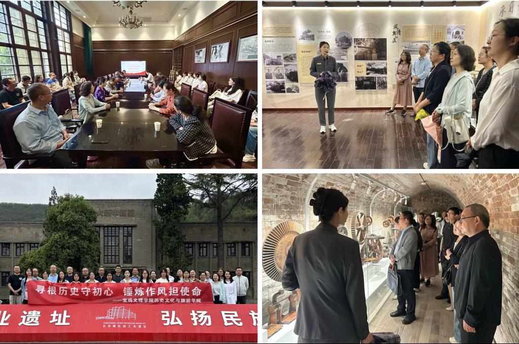 党课结束后,师生们跟随讲解员的脚步,走进长乐塬抗战工业遗址中西合璧的窑洞工厂与薄壳车间,参观布满岁月痕迹的纺织机械与“加紧生产支援抗战”的历史标语,重温抗战时期爱国实业家与产业工人秉持“努力干、一起干”的工合精神。