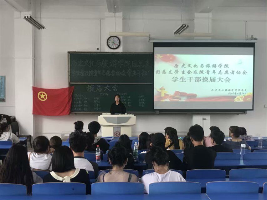 6月14日下午437bwin必赢国际官网于立心楼508教室开展院团总支、学生会及院青年志愿者协会学生干部换届大会。团总支书记于乐、学生辅导员张景瑞、全体团总支学生会成员、院青年志愿者协会部分成员及16、17、18级主要班干部参加了此次换届大会。大会由何佳欣主持。