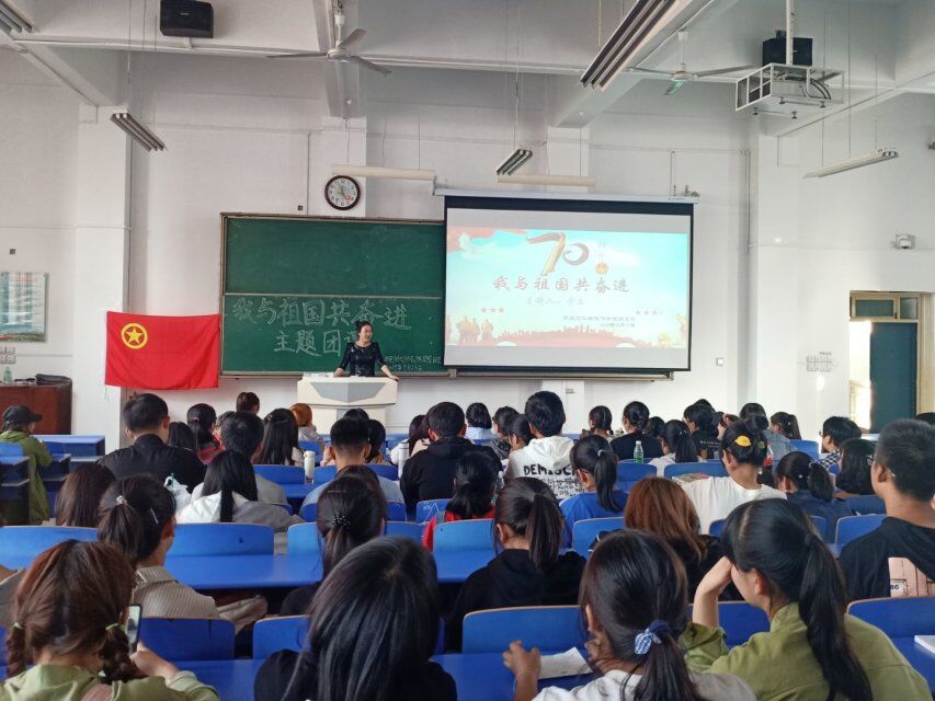 为迎接新中国成立七十周年,引导新时代广大团员青年不忘初心,9月23日下午,必赢在立心楼508开展了“我与祖国共奋进”主题团课。院团总支书记于乐、团总支副书记何佳欣和全体大一新生参加了本次主题团课。团课由于乐主讲。