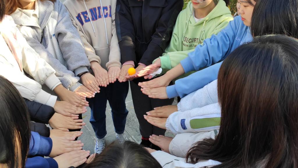 在活动中,张景瑞简单介绍了此次活动开展意在加强班级建设,提高同学间的团结性和凝聚力。活动共有四个项目。全体同学通过六人一组,依次参加每个项目。在指压板跳绳项目中,各组同学通过计时接力跳绳,拼速度拼实力,快速融入团队合作;在手背传递乒乓球项目中,使其在限定的时间内尽可能多绕圈;在长杆协作赛跑、两人三足接力赛、扔沙包这些经典的团队合作游戏,激发了同学们的游戏热情,活动现场氛围轻松愉快,让同学们感受到了团结就是力量。