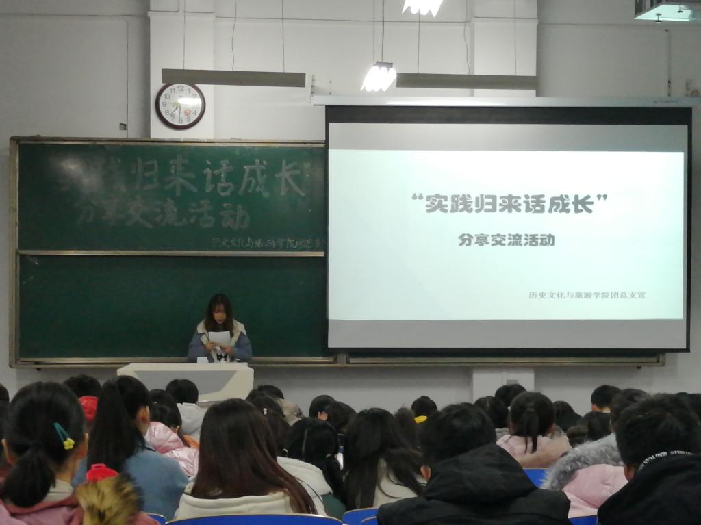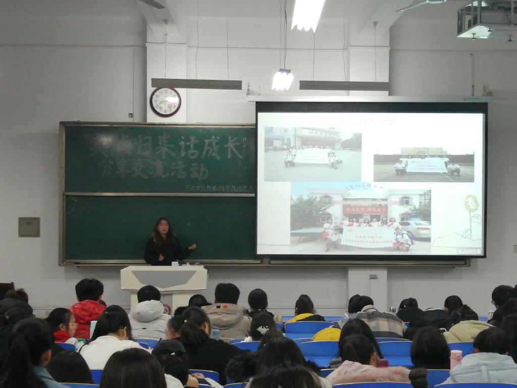 11月28日晚,必赢于立心楼508教室举行了“实践归来话成长”分享交流活动。邀请了必赢2017级旅游管理一班王婉茹、张之怡、历史学一班杨涵、2018级旅游管理一班黄子淞四位同学进行了实践经验分享交流,大一全体同学参加了此次活动。
