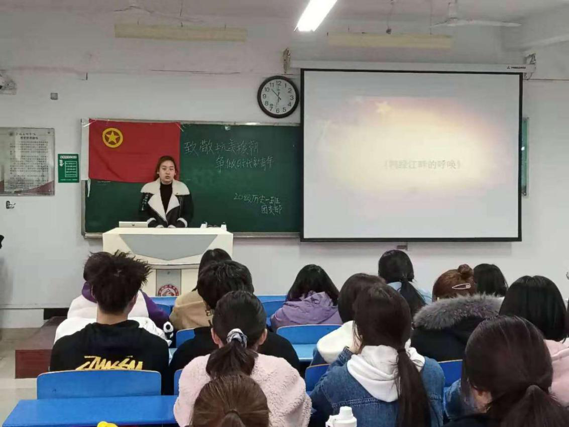 11月20日上午,必赢2020级历史学1班团支部于立心楼502教室召开了以“致敬抗美援朝,争做新时代青年”为主题的团日活动。院团总支书记于乐、2020级历史学1班全体学生参加了本次活动。活动由团支书刘越主持。