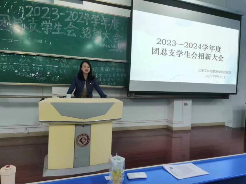 为进一步壮大学生干部队伍,增强学院学生工作活力,丰富第二课堂活动,强化优秀学生的先锋引领作用。9月27日晚,历史文化与旅游学院在高新校区立心楼508教室召开2023-2024学年度团总支、学生会招新大会。学生辅导员殷欣禾参加此次活动,大会由学生会文秘部负责人乔晓主持。