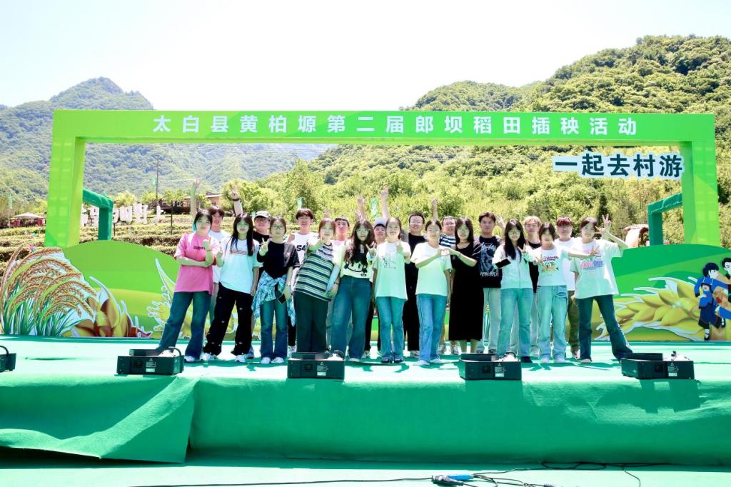 6月5日,太白县黄柏塬第二届郎坝稻田插秧活动在黄柏塬镇皂角湾村开幕。历史文化与旅游学院大学生志愿服务团队受邀参加活动。