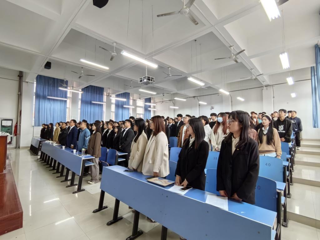 学院党委书记杨亚强在开班仪式上,围绕举办培训班的必要性和重要性、学生干部是什么、如何当好学生干部三个方面做了详细的解读,并对同学们提出了几点要求,一要提高思想认识,做好定位;二要正确处理好学习与工作的关系;三要在工作中敢于探究、善于创新。会上,学院上一届团总支学生会执行主席栗晨梅对学院2022—2023学年学生工作进行总结报告。学院现任团总支副书记雷茗媛代表本届团总支学生会成员作了表态发言并与上一届团总支副书记徐彤进行团旗交接。最后,与会成员全体齐唱团歌。开班仪式由学院党委副书记、副院长罗燕主持。